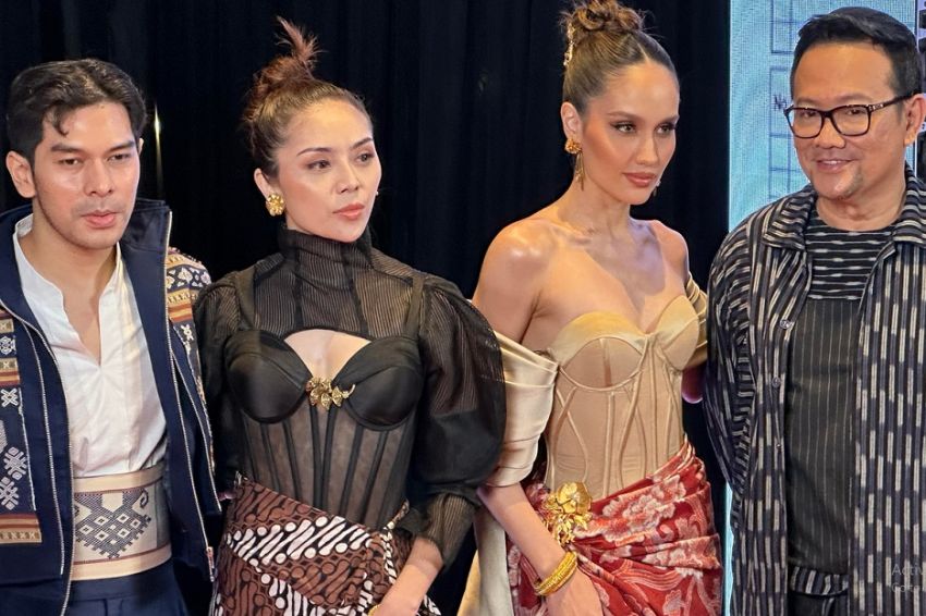 Seperti kombinasi dress batik bernuansa avant garde yang ia kenakan hari ini. Cinta tampak memadukan kain batik fuschia motif bunga berwarna vivid dari desainer Iwan Tirta.
