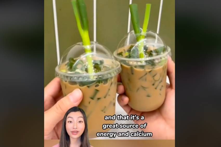 Minuman kopi daun bawang belakangan viral dan digandrungi oleh masyarakat di China. Foto/TikTok @chinesewithmia