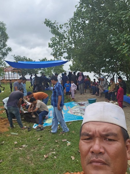 Terlihat warga Tempatan dalam keikutsertaan baik dari penyembelihan yang di laksanakan oleh ustad dan pemotongan daging oleh warga Tempatan untuk di bungkus dan di bagikan ke masyarakat.