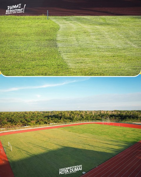 Muhammad Mufarizal, S.T., M.IP selaku Kepala Dinas Pertanahan dan Tata Ruang (Dispertaru) Kota Dumai yang menaungi pengerjaan stadion sepakbola menyampaikan jika pengerjaan lapangan sudah selesai sepenuhnya dan dilanjutkan dengan pembangunan tribun.