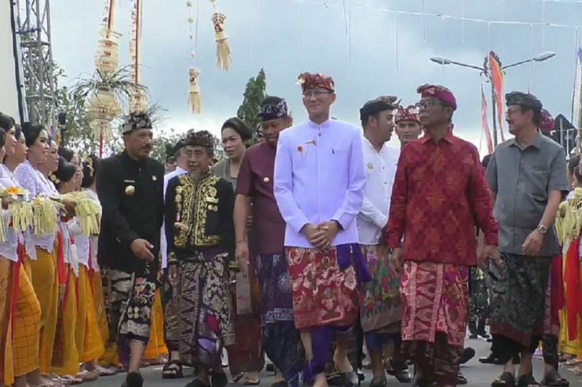 Dalam pembukaan festival itu, rombongan Mentri Sandi Uno disambut tari pendet masal yang melibatkan 400 penari dari anggota PGRI Kabupaten Klungkung.